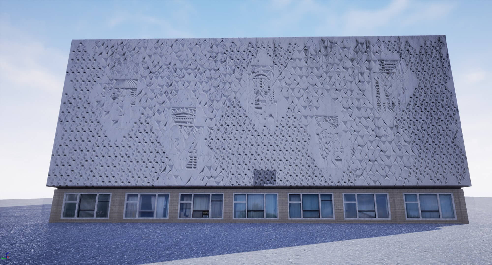 Low poly 3D model of historical movie theater Kino International in east Berlin